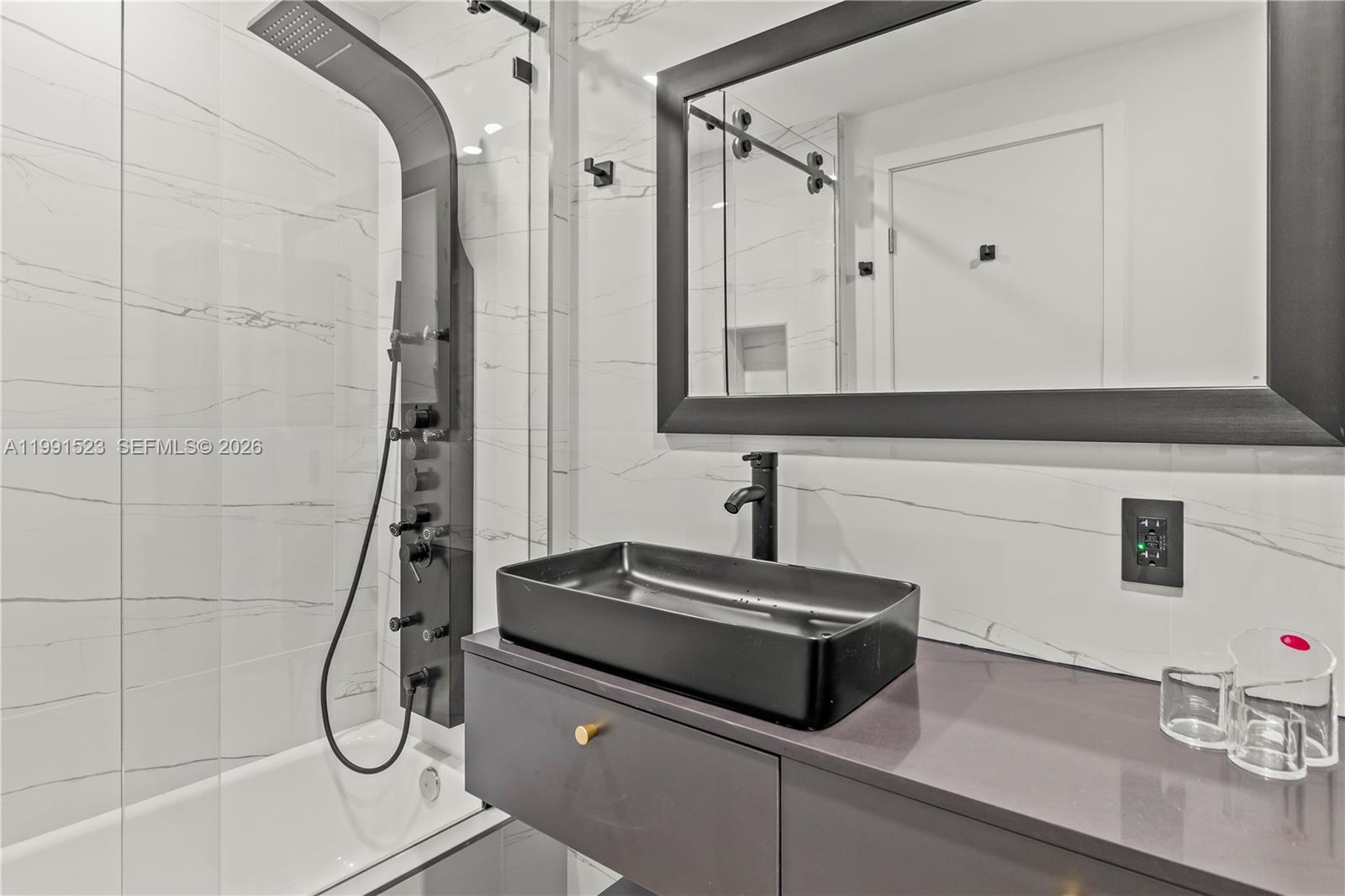 Modern 3-bedroom, 3-bathroom townhome plus a studio, located within walking distance to Bal Harbour Shops and the beach. This residence features a clean architectural design with natural earth-tone finishes, wood floor and a flexible open-concept floor plan. The interior includes spacious living and dining areas that flow into a gourmet kitchen equipped with European-style cabinetry, stainless steel appliances, and a wine cooler. Notable functional upgrades include a specialized steam laundry closet and a Tesla charging station. A key feature of the property is the private rooftop terrace, which includes a swimming pool, BBQ area, and a half-bathroom. The rooftop offers 360-degree views, providing an ideal space for outdoor living and entertaining. This home combines high-quality construction with a prime location, offering proximity to world-class dining and coastal amenities.