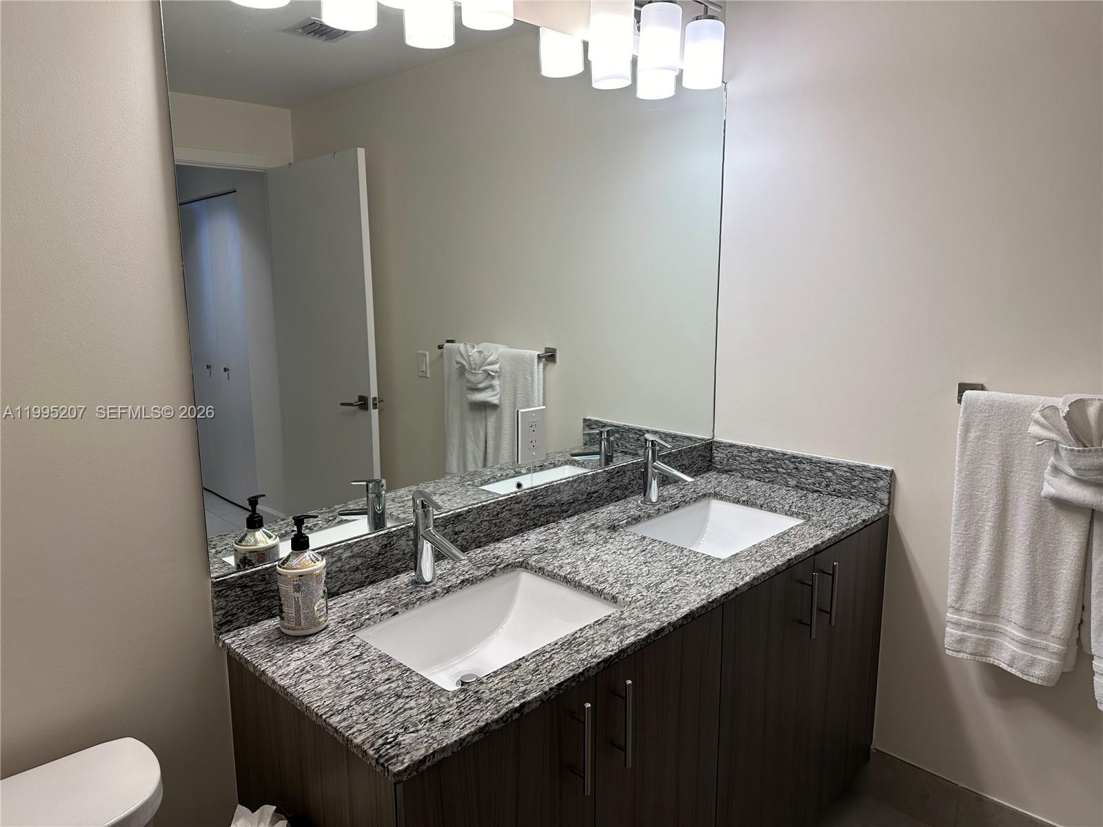 This is your dream condo in the heart of Doral, enjoy this stunning unit with two bedroom, 2 bathroom, open and modern floor plan, beautiful kitchen with stainless steel appliances and granite counter top, impact windows. The Master Bedroom features a closet and luxury bathroom. Comfortable second bedroom with ample closet space, the living room opens up to a private balcony with amazing views. This unit also includes one car garage, washer and dryer and a lot of amenities to enjoy days in a very well maintained building, excellent schools, close to great restaurants, park, and the best of Downtown Doral. Top Amenities includes luxury pool, gym, child's room, sauna and massage room, meetings spaces. Water, Cable, Internet is included. Totally furnished.