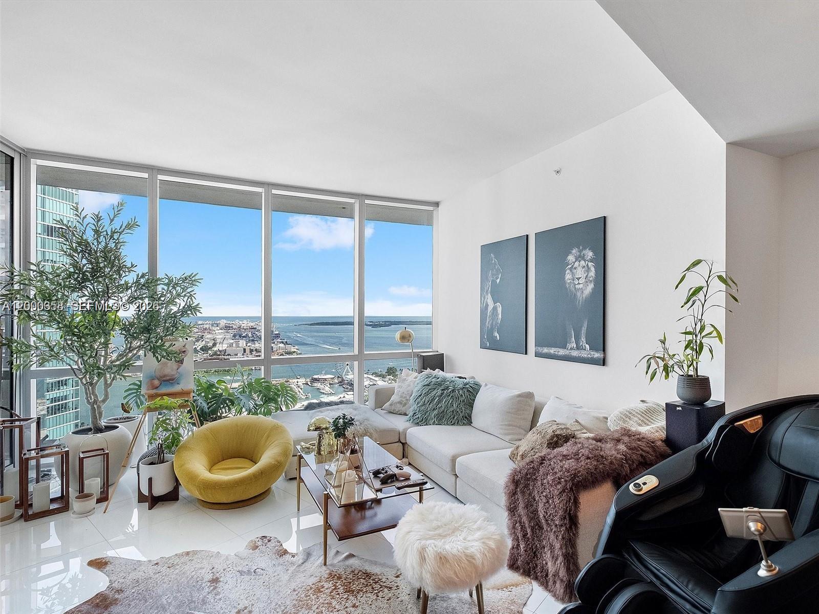 Paramount Miami Worldcenter presents a stunning 2-bedroom, 3-bathroom residence with an additional den, spanning 1,753 SqFt. and featuring soaring 10-foot ceilings and a private elevator foyer. Revel in breathtaking panoramic views of the ocean, bay, and Miami's skyline. The European-style kitchen is equipped with premium Bosch appliances, blending modern design with functionality. This premier building offers an unparalleled array of amenities, including sports courts, multiple pools, a business center, game room, fitness studios, observatory, movie theater, kids' play area, and on-site dining. Perfectly positioned in the heart of Miami, it's just steps from world-class dining, shopping, entertainment, and cultural destinations like Bayside, the Kaseya Center, and the Design District.