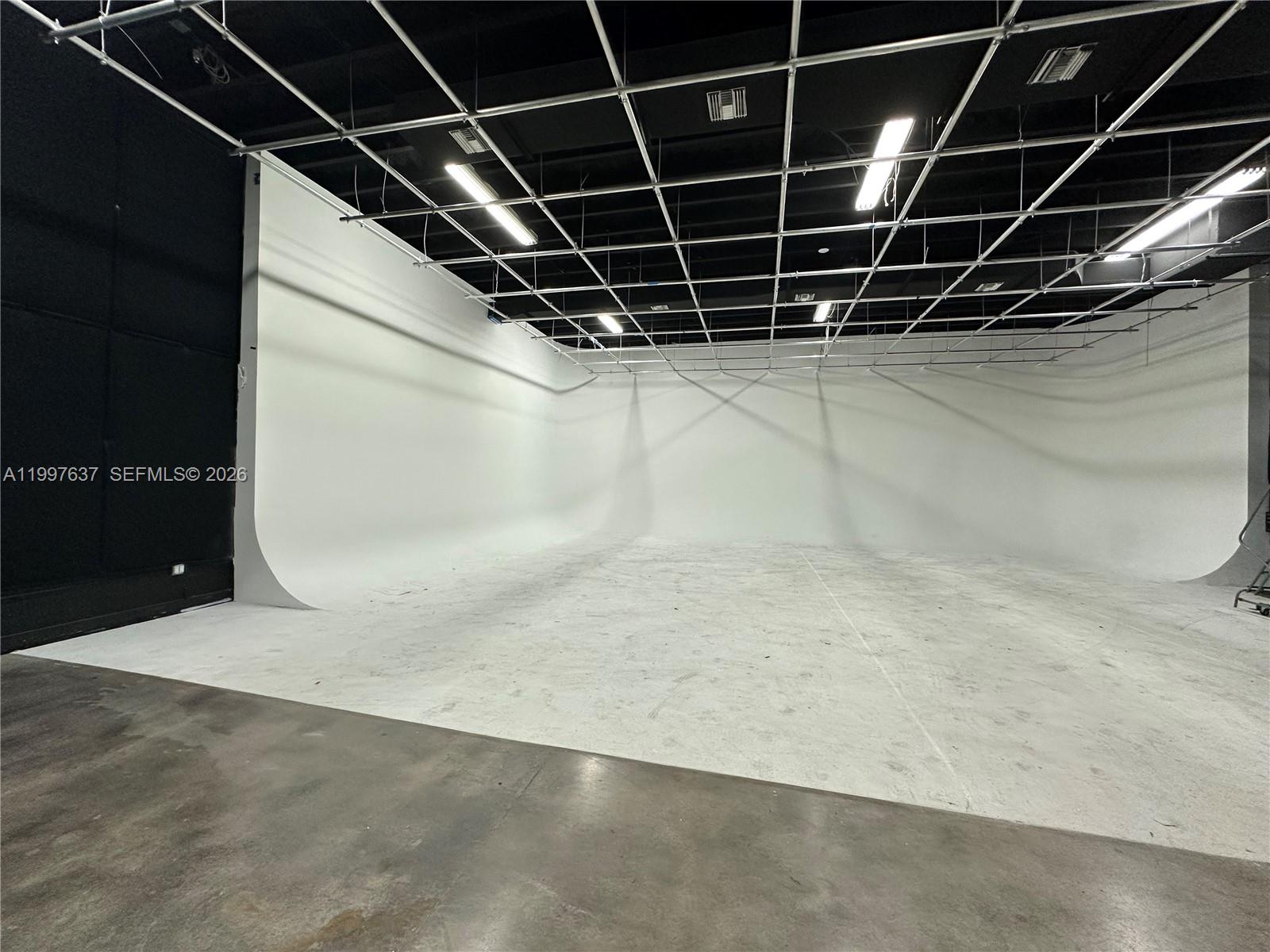 Film Studio with offices and dressing rooms, could be an office/ warehouse combo. Lease includes adjacent commercial parking lot 6000 SF. The building is 6,130 SF Approx. 2400 SF serves as office space including a reception area, four private offices, one conference room, dressing room and three bathrooms. Approx. 3700 SF is soundproof studio featuring 22 FT high ceilings, lighting rail, high capacity electric transformer and infinity screen. Nestled in between Midtown, Wynwood, Design District and Little Haiti and mins from the highway. Price is per SF per year.