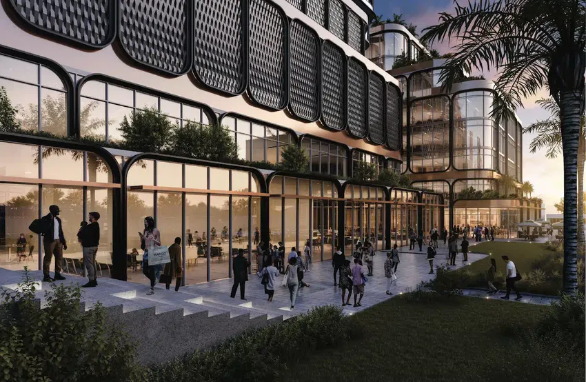 Además, se pone un énfasis aparte en la planta baja: se plantea como activa, transparente y orientada hacia la calle (carácter de storefront, acristalamiento de piso a techo, esquinas suavizadas), lo cual resulta especialmente importante en el Design District, donde la arquitectura “vive” a escala peatonal.
