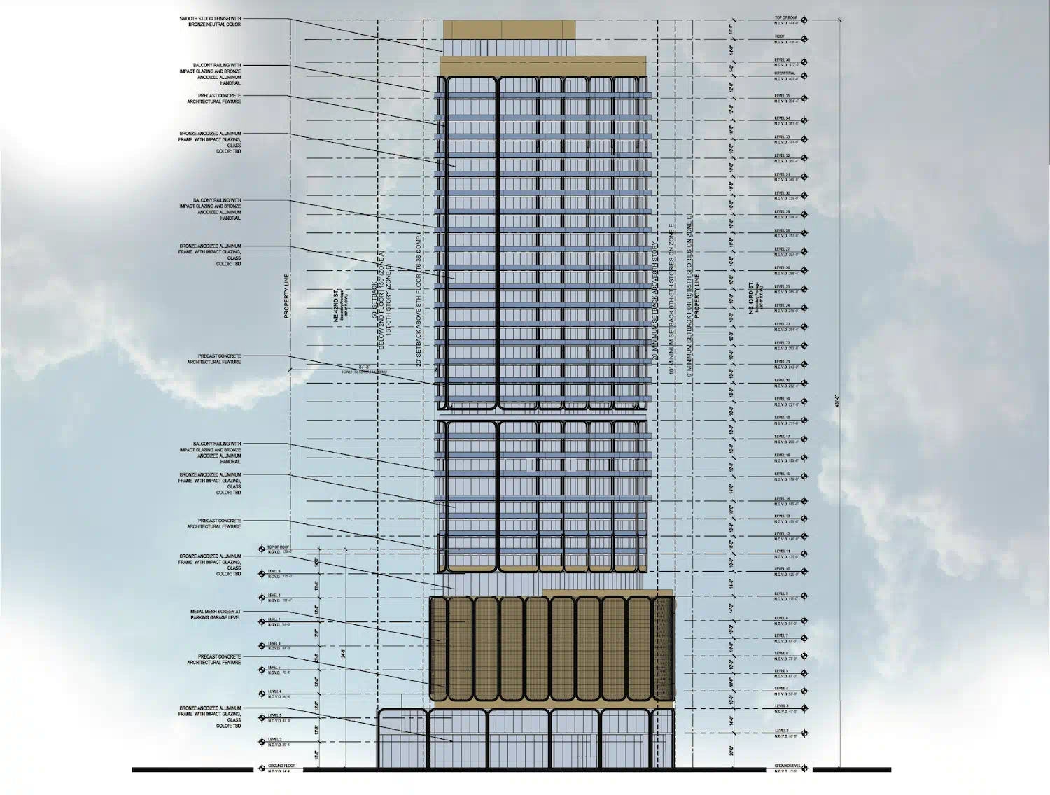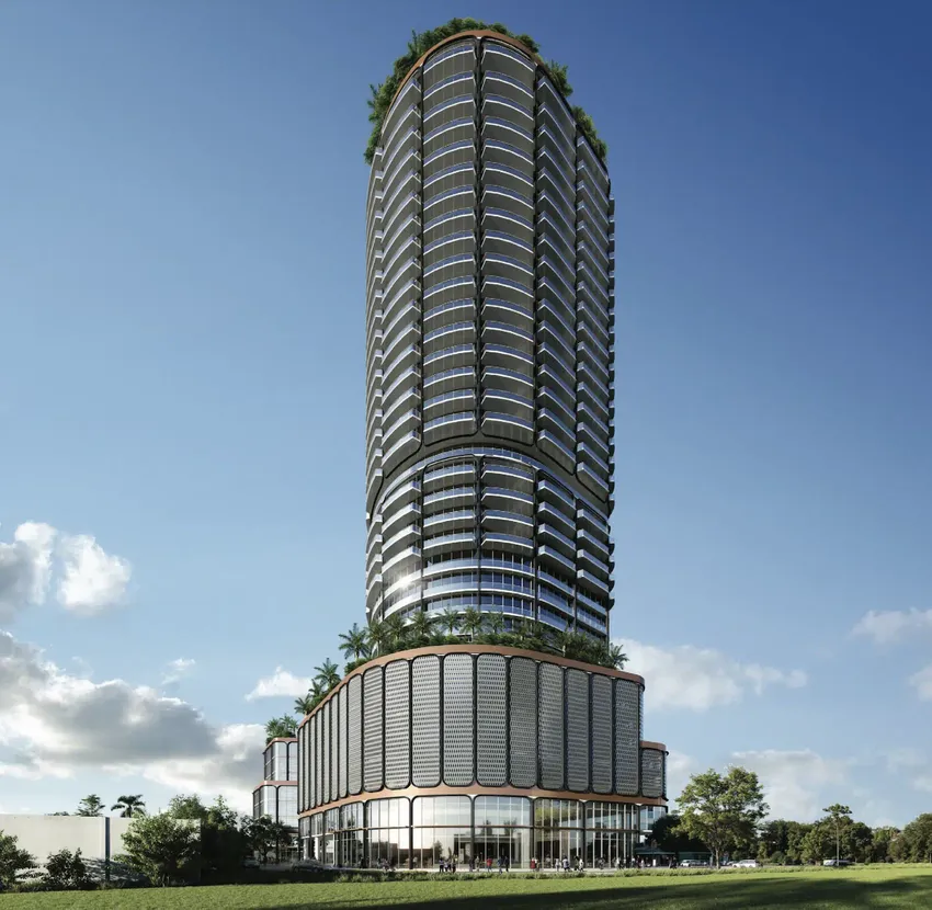 El proyecto está ubicado en 220 NE 43rd Street, Miami, en un terreno de 1.89 acres (80,980 sq ft), dentro del Miami-Design District Retail Street Special Area Plan (SAP), Block 5 East.