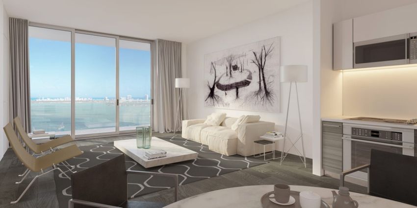The first 5 floors of the building are reserved for designer suites deluxe. Above them 24 floors of modern first-class apartments, equipped with the latest technology and according to fashion trends, are situated. On the upper floors there are apartments with lovely views of the ocean, the skylines of Miami and the bay.